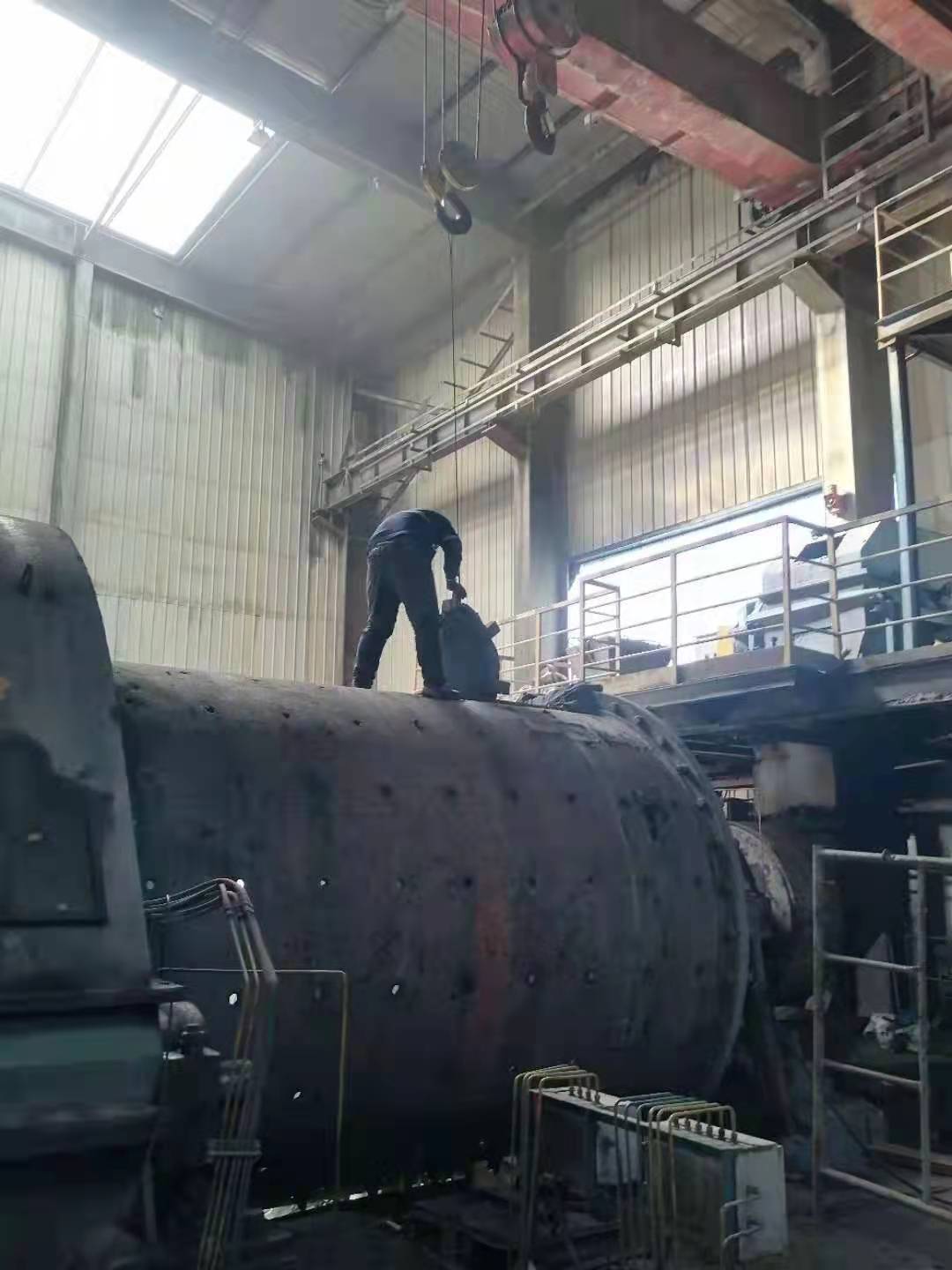 26日上午8時(shí),開(kāi)始對(duì)9號(hào)球磨機(jī)進(jìn)行停機(jī)倒鋼球作業(yè),相繼開(kāi)始了一系列的拆裝工作。開(kāi)始用行車自動(dòng)模式進(jìn)行倒鋼球和拆卸作業(yè),隨著裝襯板難度和危險(xiǎn)系數(shù)的增大,后期行車采用人工手動(dòng)模式作業(yè),通過(guò)這種倒行車的辦法,大大提高了工作效率,保證了作業(yè)的精準(zhǔn)和人員的安全。經(jīng)過(guò)65個(gè)小時(shí)的連續(xù)奮戰(zhàn),9號(hào)球磨機(jī)于3月1日凌晨1:25開(kāi)機(jī)運(yùn)轉(zhuǎn)。