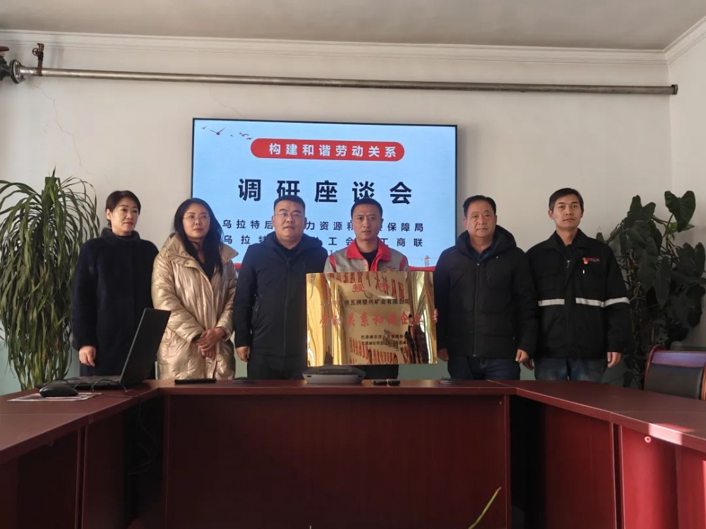 12月25日,烏拉特后旗人社局黨委書記、局長(zhǎng)敖日格樂(lè),總工會(huì)副主席潘瑩,工商聯(lián)副主席馬述敏等一行人到訪,在公司二樓會(huì)議室開(kāi)展座談會(huì)并進(jìn)行“勞動(dòng)關(guān)系和諧企業(yè)”授牌儀式,公司黨支部副書記、經(jīng)理史小亮,職能部室人員參加座談會(huì)。