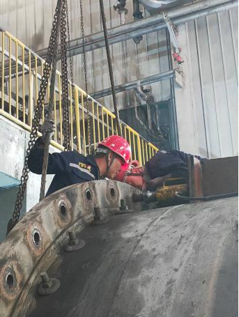 檢修期間,技術(shù)人員全程現(xiàn)場駐點(diǎn)指導(dǎo)與監(jiān)督。從舊端蓋的拆卸、接觸面的精細(xì)打磨處理,到新端蓋的精準(zhǔn)起吊定位以及最終的密封性能測試,每一道工序均嚴(yán)格遵循既定工藝標(biāo)準(zhǔn)和質(zhì)量要求。面對(duì)端蓋重量大、安裝空間受限等技術(shù)難題,檢修團(tuán)隊(duì)迎難而上,憑借專業(yè)的吊裝設(shè)備和精湛的操作技能,平穩(wěn)高效地完成了舊端蓋拆除與新端蓋安裝就位。經(jīng)過細(xì)致調(diào)整連接螺栓的緊固力矩,確保了端蓋與筒體之間達(dá)到卓越的密封效果。安全監(jiān)督人員全程旁站監(jiān)護(hù),對(duì)吊裝作業(yè)、動(dòng)火作業(yè)、臨時(shí)用電等關(guān)鍵環(huán)節(jié)實(shí)施嚴(yán)格安全管控,有力保障了整個(gè)施工過程的安全零事故。通過全體參檢人員的協(xié)同攻堅(jiān),端蓋更換任務(wù)較原計(jì)劃提前17小時(shí)圓滿完成。