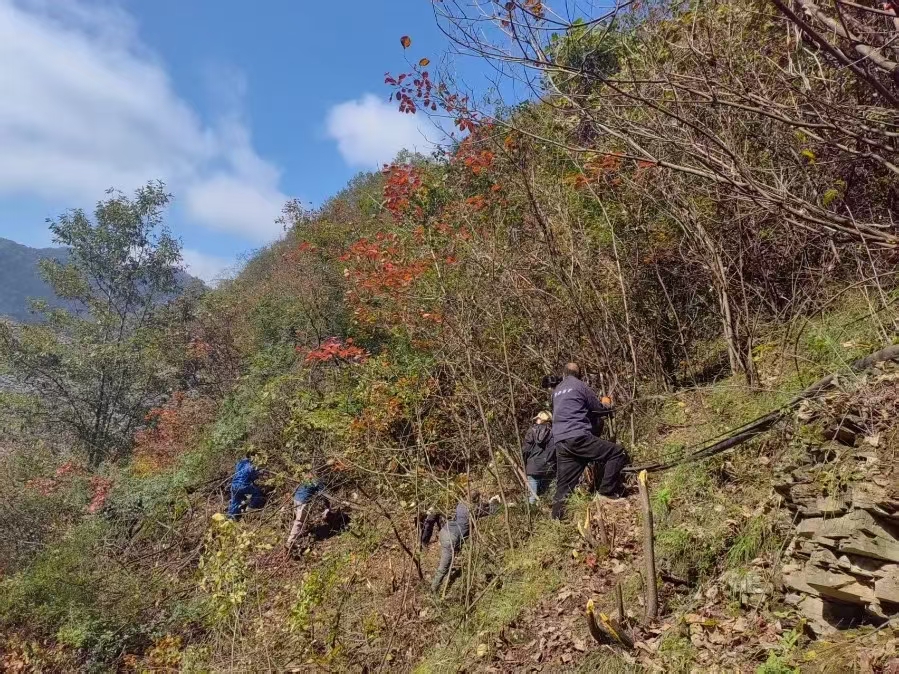 作業(yè)現(xiàn)場環(huán)境極為惡劣,山坡陡峭濕滑,人員站立困難,作業(yè)風(fēng)險(xiǎn)極高。同志們想方設(shè)法在荊棘中站穩(wěn)腳跟,揮刀清障、俯身排險(xiǎn)。盡管有人手掌被刺劃傷,有人屢次因腳下打滑摔倒,但無人退縮,稍作處理便繼續(xù)投入“戰(zhàn)斗”。